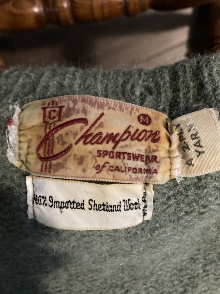 The sweater below is a medium, so it may fit. But I’m posting about it not to brag about the wool savings, but to share the label: